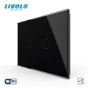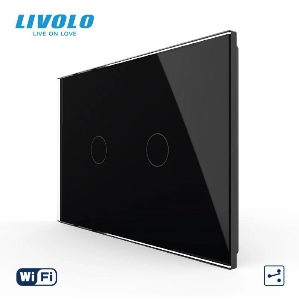 Intrerupator dublu, standard italian, cap scara / cap cruce, conexiune WiFi, cu panou sticla, 3M, Negru, Livolo