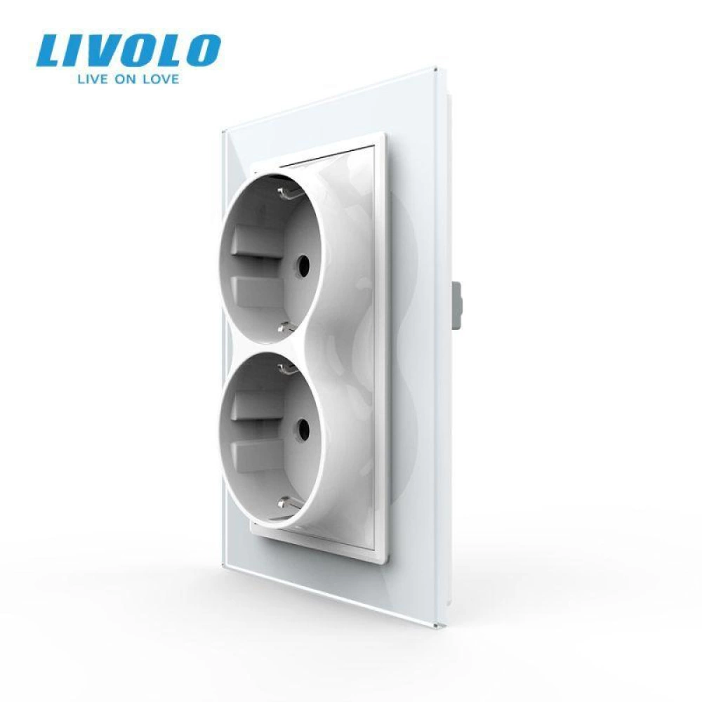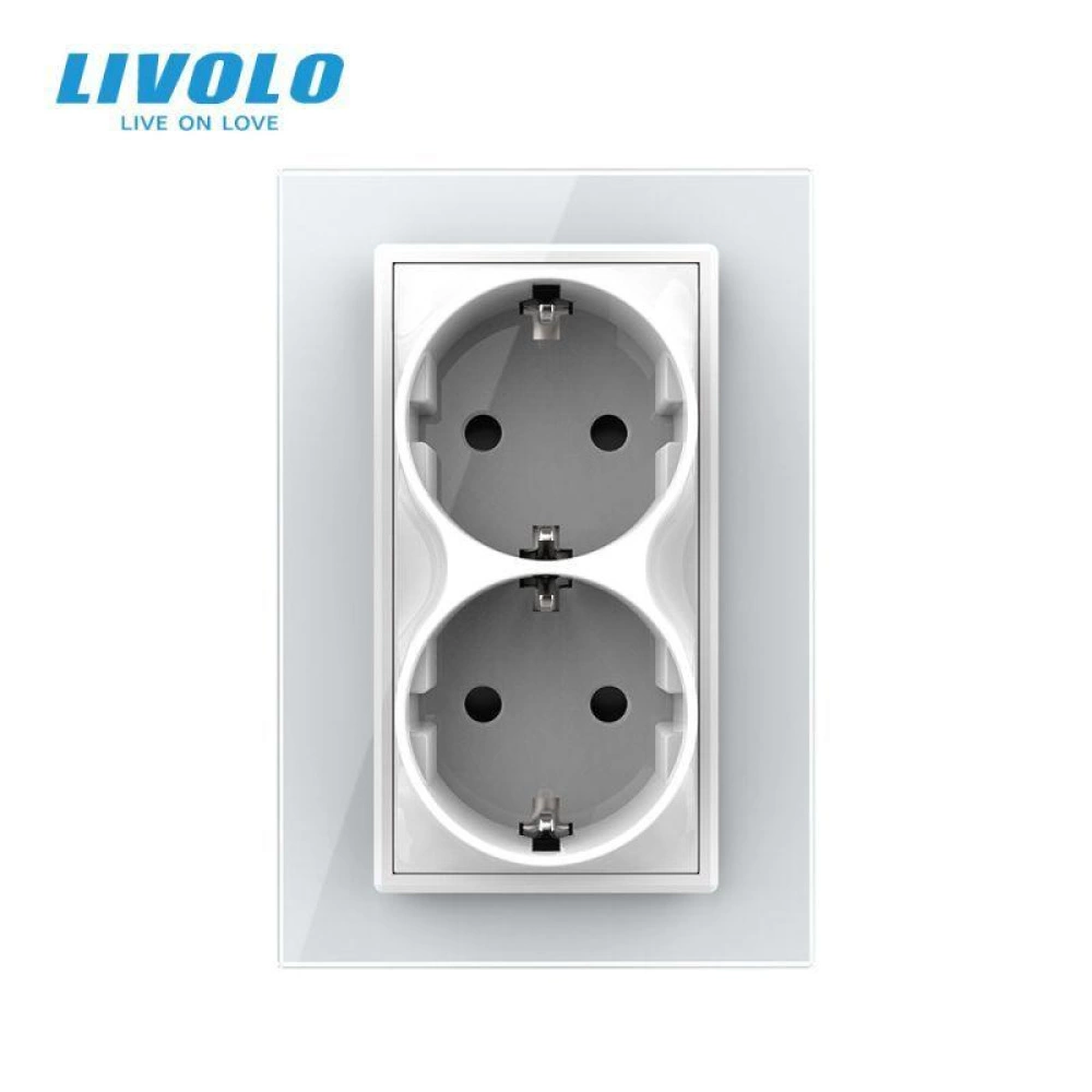 Priza dubla pentru o doza, cu rama sticla, Auriu, Livolo