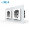 Priza dubla Schuko cu port USB tip C, cu rama sticla, Alb, Livolo