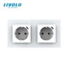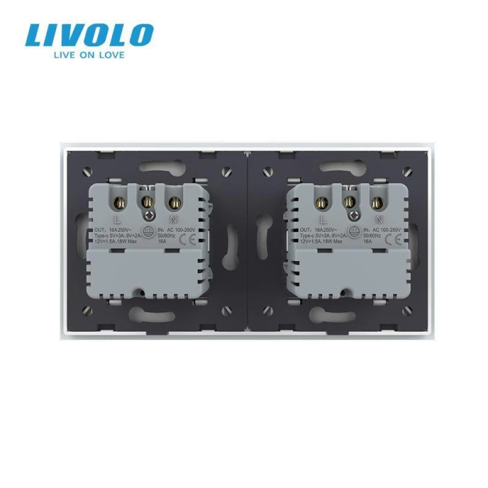 Priza dubla Schuko cu port USB tip C, cu rama sticla, Negru, Livolo