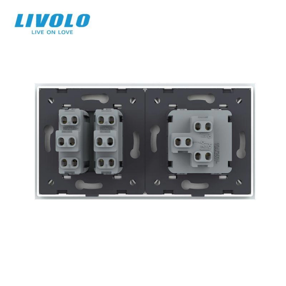 Intrerupator mecanic simplu + dublu, cap / scara, cu rama sticla, Gri, Livolo
