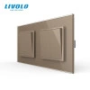 Intrerupator mecanic dublu + dublu, cap / scara, cu rama sticla, Auriu, Livolo