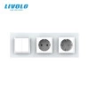 Intrerupator mecanic dublu + priza Schuko + priza Schuko, cap / scara, cu rama sticla, Negru, Livolo