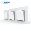 Intrerupator mecanic simplu + dublu + dublu , cap / cruce, cu rama sticla, Alb, Livolo