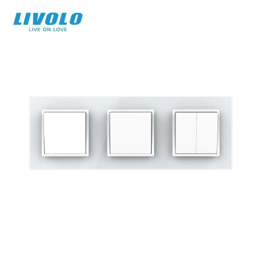 Intrerupator mecanic simplu + dublu + dublu , cap / cruce, cu rama sticla, Auriu, Livolo