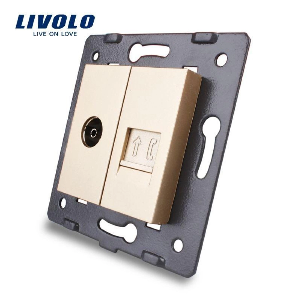 Modul Priză dublă televizor+telefon, TV+RJ11, Auriu, Livolo