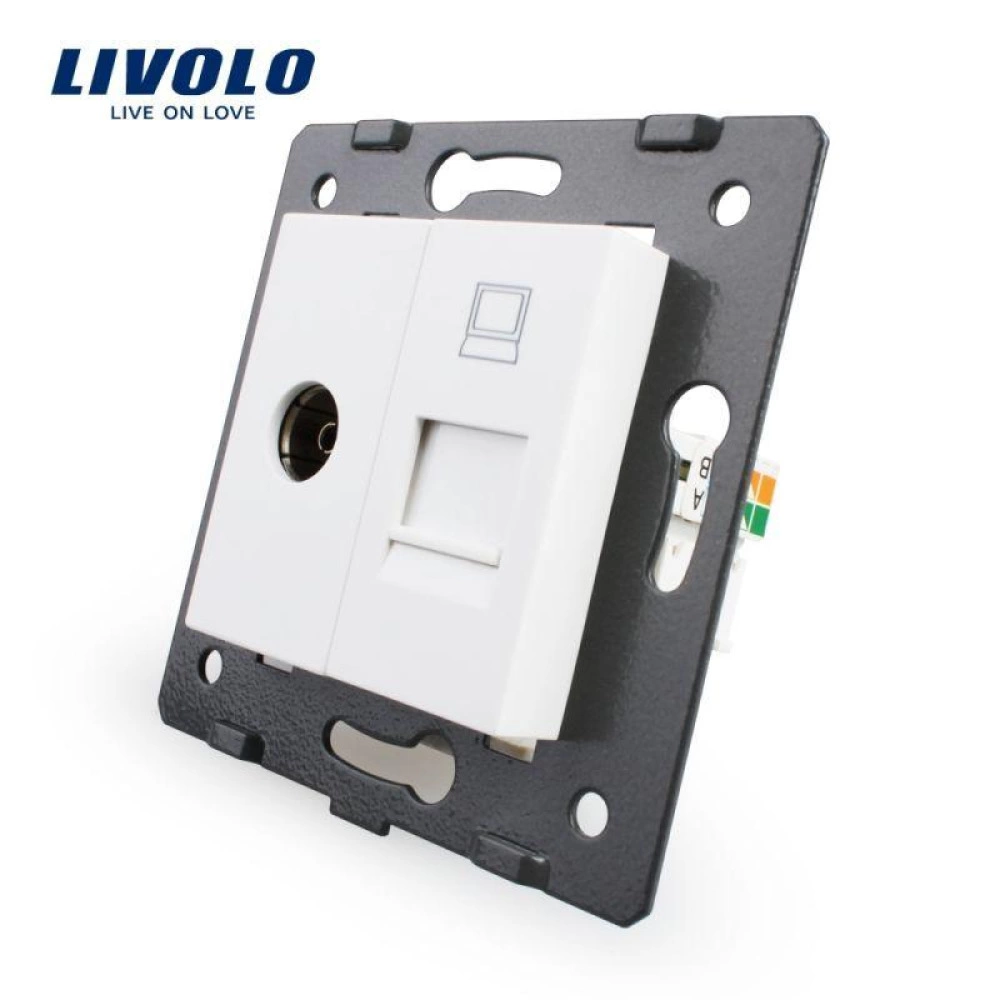 Modul Priză dublă televizor+reţea calculator, TV+RJ45, Alb, Livolo