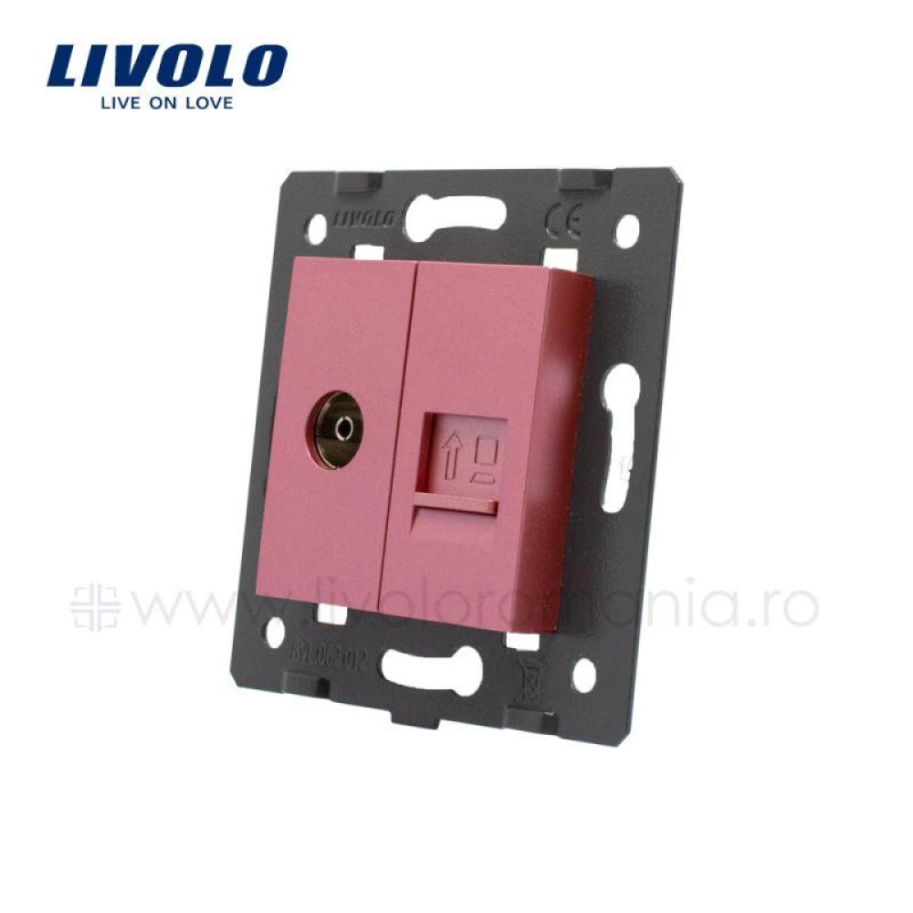 Modul Priză dublă televizor+reţea calculator, TV+RJ45, Roz, Livolo