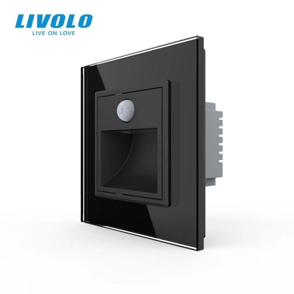 Lampa de orientare scara, cu senzor miscare, cu rama de sticla, Negru, Livolo