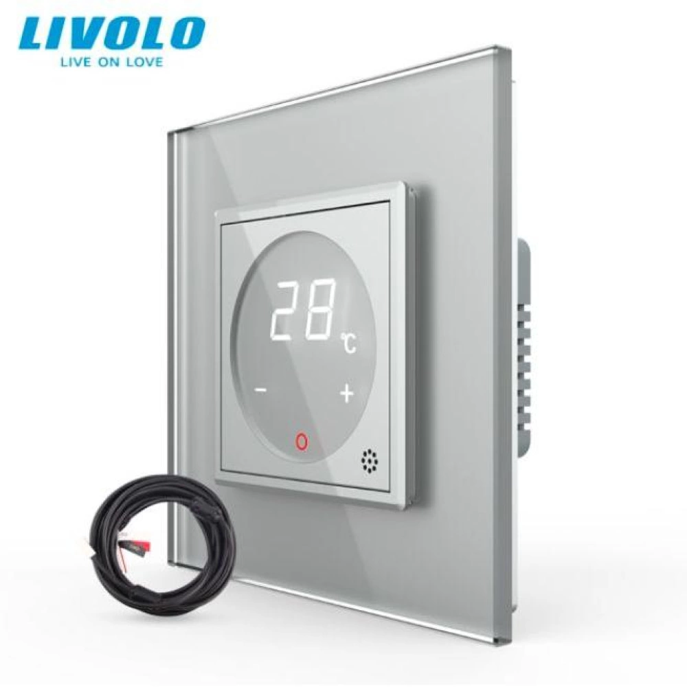 Termostat cu fir pentru incalzire in pardoseala, afisaj electronic, cu touch-screen, Gri, Livolo