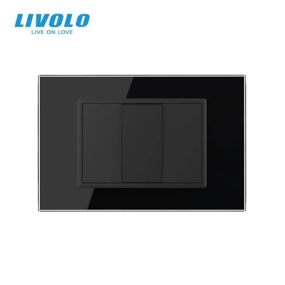Intrerupator mecanic simplu 3M, cu rama sticla, Negru, Livolo