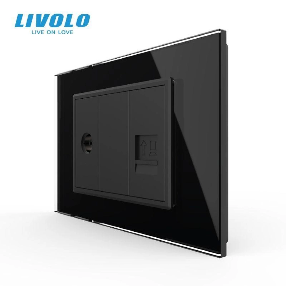 Priza TV + retea calculator 3M, TV+RJ45, cu rama sticla, Negru, Livolo