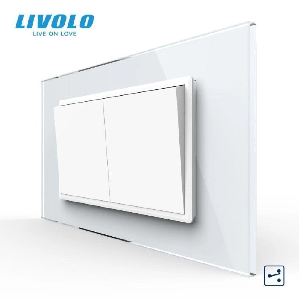 Intrerupator mecanic dublu cap scara, 4M, cu rama sticla, Alb, Livolo