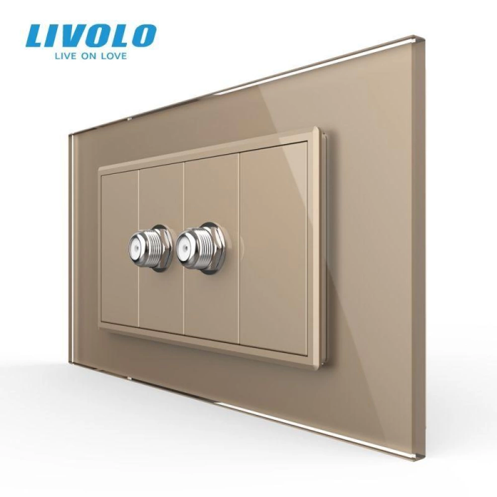 Priza dubla TV Satelit, 4M, cu rama sticla, Auriu, Livolo